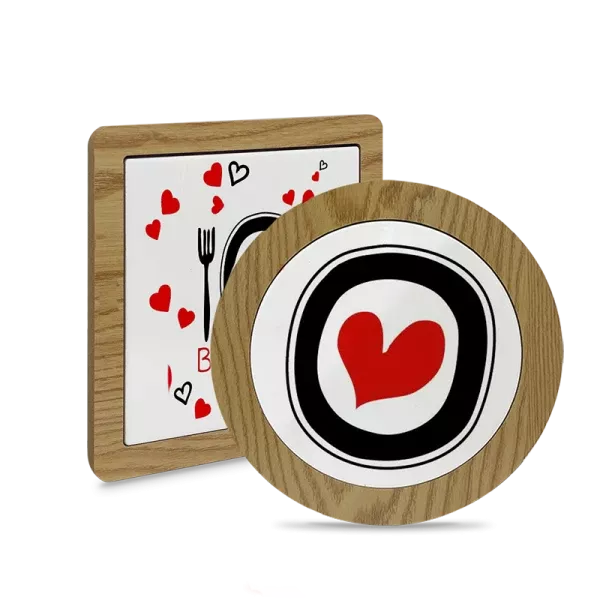 Sottopentole in ceramica bianca ultrabrillante con involucro in legno