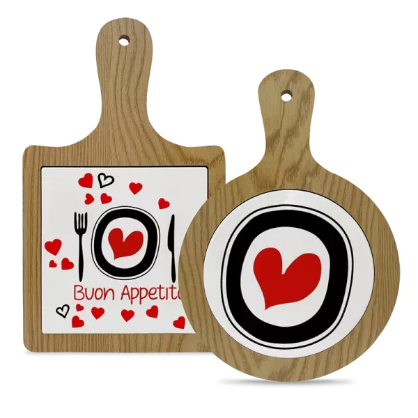 Tagliere in ceramica bianca ultrabrillante con manico e involucro in legno e m